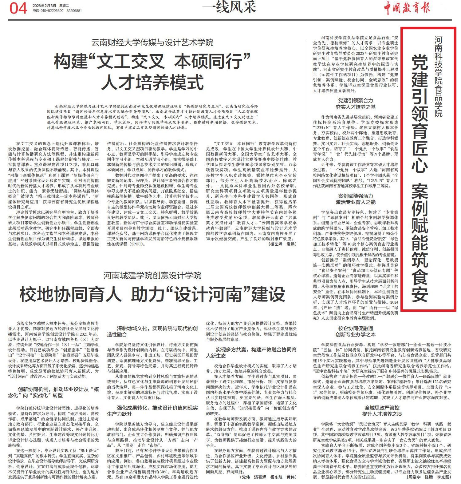 2月3日,《中国教育报》以“党建引领育匠心 案例赋能筑食安”为题,对我校食品学院党委党建工作相关做法进行了报道。