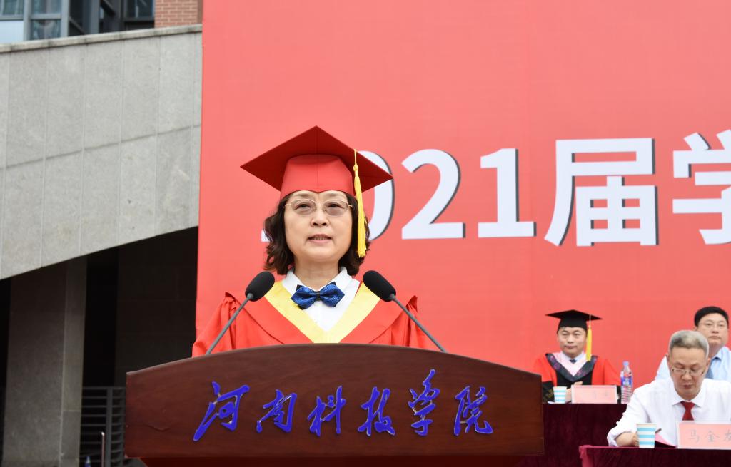 副校长王霞宣读《河南省2021年优秀应届毕业生名单》和《开云电竞lol买比赛2021年优秀应届毕业生名单》。