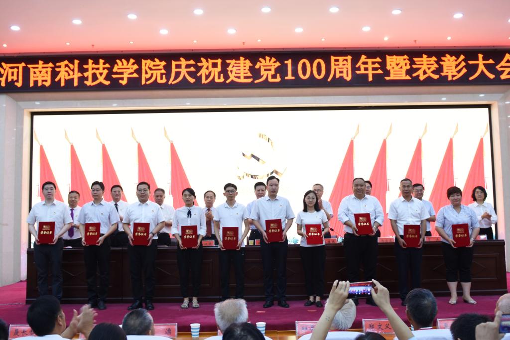 校党委副书记苗双虎宣读“光荣在党50年”党员名单、荣获河南省先进基层党组织和河南省高校先进基层党组织、先进个人名单以及我校关于表彰2020—2021学年先进基层党组织、优秀共产党员和优秀党务工作者的决定。全校共有41名老党员荣获“光荣在党50年”纪念章,1个基层党委荣获河南省先进基层党组织,4个基层党委荣获河南省高校先进基层党组织,5名同志荣获河南省高校优秀共产党员,2名同志荣获河南省高校优秀党务工作者;7个基层党委(党总支)、34个党支部、105名共产党员和18名党务工作者荣获我校2020—2021学年先进基层党组织和先进个人荣誉称号。