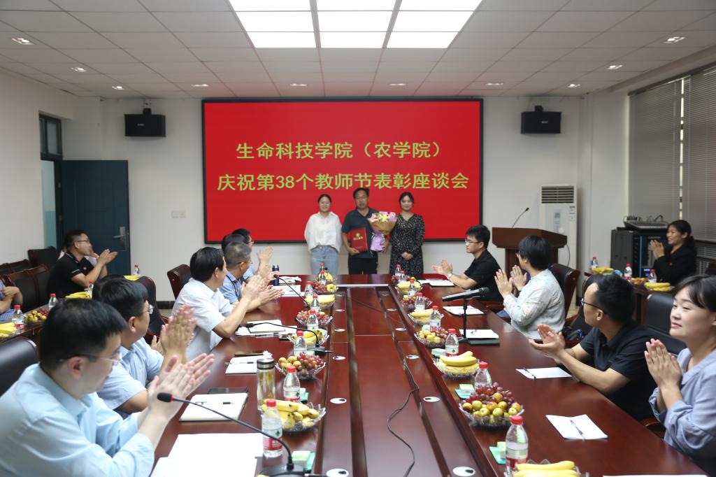 9月9日下午,生命科技学院在12#708召开庆祝第38个教师节暨表彰座谈会。学院党政班子成员、2021-2022学年受到各级各类表彰的教师、系主任、教研室主任、教师代表、学生代表共三十余人参加会议。