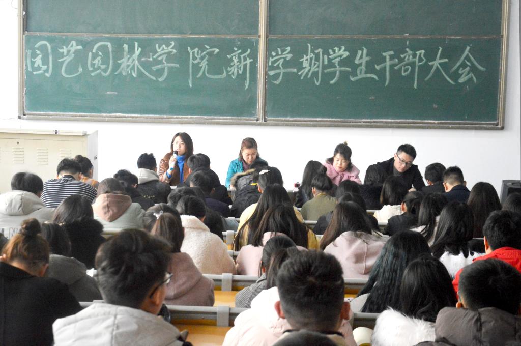 2月24日下午,园艺园林学院于1号教学楼合一教室召开了2019年新学期全体学生干部会议。学院党委副书记朱黎娅、全体辅导员以及学生干部100余人参加了此次会议。