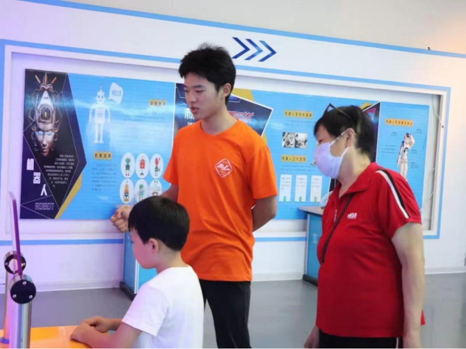 活动过程中,志愿者担当讲解员,引导小学生了解科技世界。馆内罗列的各种声、光、电、信息技术吸引着小学生参与探索。志愿者用通俗易懂、生动有趣的语言为小学生解释相关科技知识,让小学生观察、发现,并实际操作,感受科技带来的趣味体验。