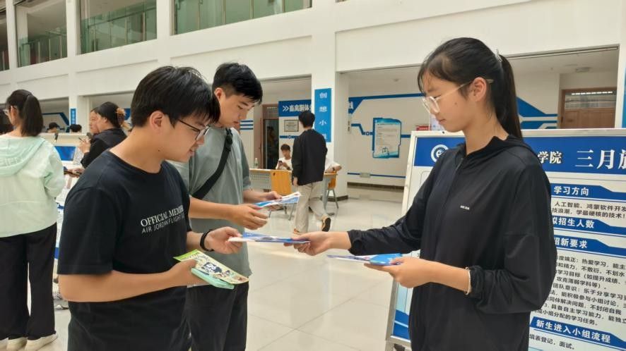 为深化学院特色办学理念,推动课外创新小组建设高质量发展,助力2025级新生加速融入专业学习体系,计算机科学与技术学院于9月13日上午在弘德楼一楼大厅隆重举办2025年度课外创新小组学生双选会。