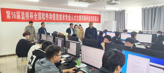 教务处处长杨宾峰、副处长赵高丽,计算机科学与技术学院书记周启、院长高国红、副院长李学勇巡视了赛场。计算机科学与技术学院组织30名学生志愿者,提供考场引导、信息咨询、秩序维护和食物派发等工作,保障大赛顺利进行;后勤服务中心和网络信息化管理中心领导及工作人员全程值班,保证了电力和网络畅通。