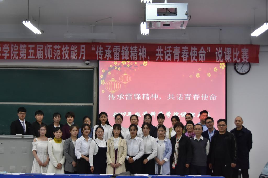 4月30日下午,数学科学学院第五届师范技能月“传承雷锋精神,共话青春使命”说课比赛于九合一成功举办。本次比赛特邀教务处副处长古乐声、科技学院附属小学校长郭斐杰、师大附中、我校双导师张存敬、铁一中、我校双导师王银尚、数学科学学院院长张万芹、副院长董瑞、马宝林、校内指导教师刘娟担任评委,我院师生200余人观看本次比赛。