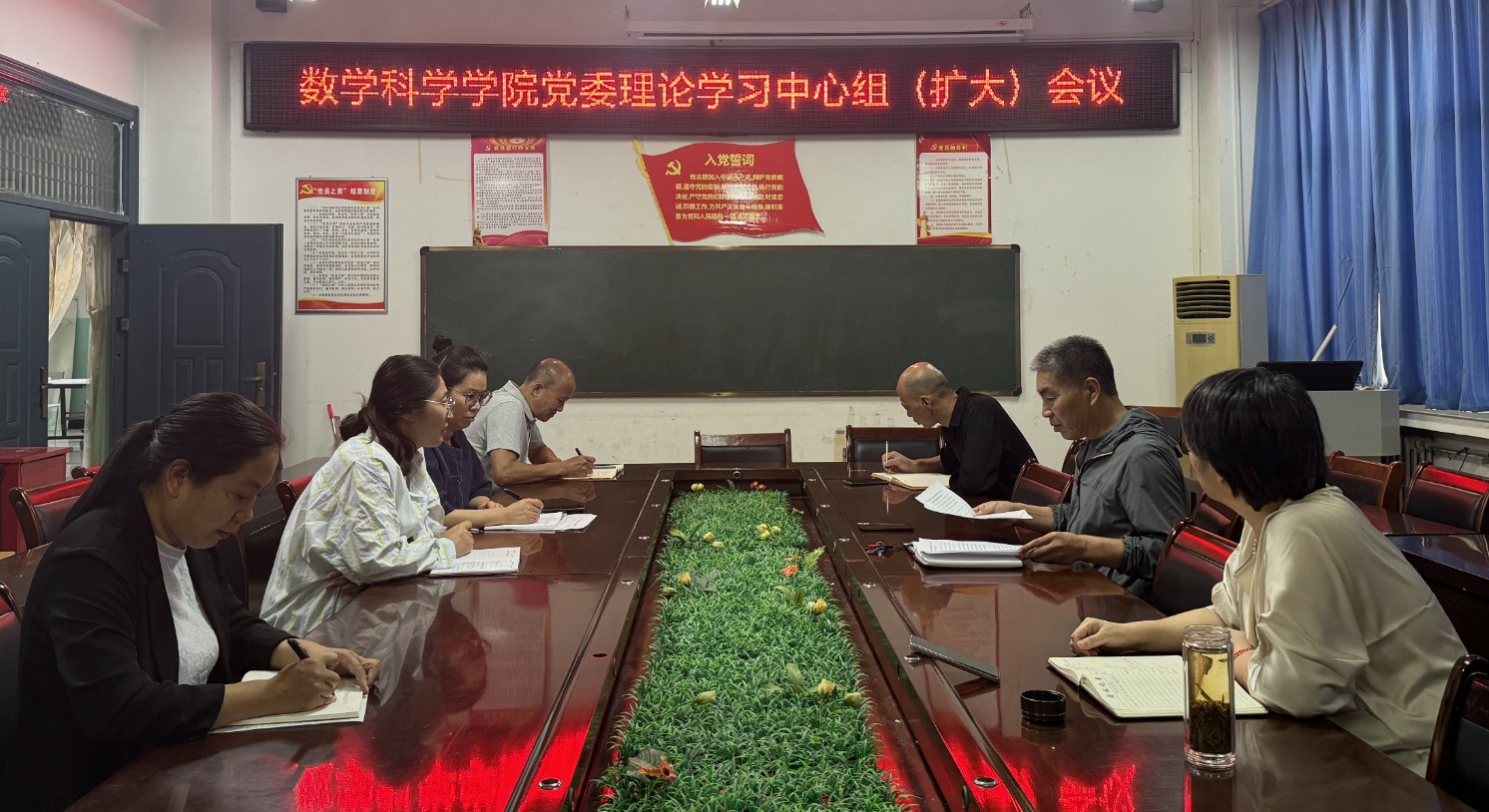 9月25日下午,数学科学学院在8303会议室召开党委理论学习中心组(扩大)会议,学院党政班子成员、支部书记及科级干部参加会议。会议由院党委书记李军民主持。