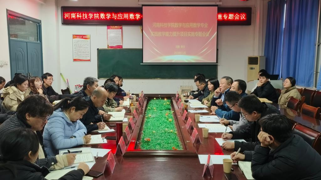 11月28日下午,开云电竞lol买比赛数学与应用数学专业实践教学能力提升项目实施专题会议在八号楼303会议室举行。河南师范大学数学与信息科学学院副院长裴永刚、新乡学院数学与统计学院副院长皮磊、河南师范大学附属中学校长侯伟、教师付帅、刘晨曦、新乡学院附属中学教师宋艳梅、数学科学学院班子成员、师范专业负责人以及学科教学研究生40余人参加会议。