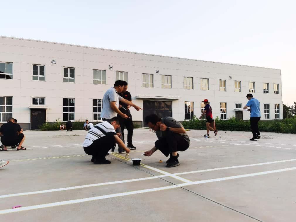 活动现场,各位参与者分工明确、干劲十足。大家从场地规划、画线、粘贴胶带到刷漆,不顾烈日炎炎,齐心协力,配合默契,圆满完成9块羽毛球场地的划线工作,充分展现了团结协作、艰苦奋斗的优良作风。