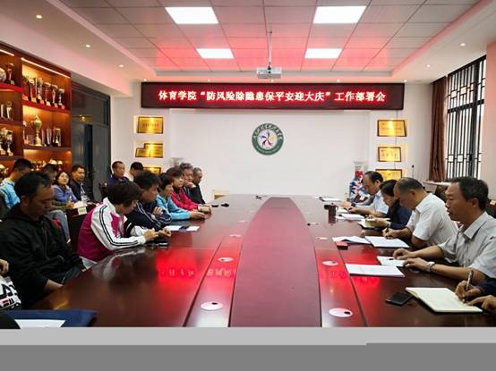 9月12日下午,体育学院在院会议室召开“防风险、除隐患、保平安、迎大庆”工作部署会,全体教职工参加了会议。会议由院党委书记徐现峰主持。
