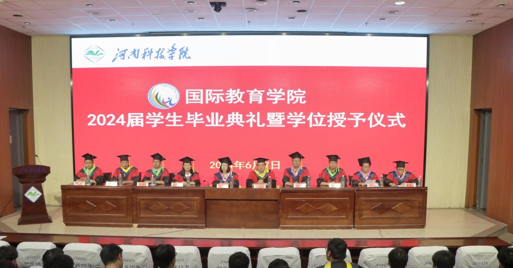 6月7日上午,国际教育学院在图书馆学术报告厅举办2024届学生毕业典礼暨学位授予仪式,国际交流与合作处处长冯霞,机电学院院长聂福全,教育科学学院院长李小丽,动物科学学院副院长王磊,信息工程学院副院长白林峰应邀出席典礼,国际教育学院领导班子,教师代表及2024届本科毕业生代表共200余人参加本次典礼,典礼由国际教育学院副院长王君君主持。