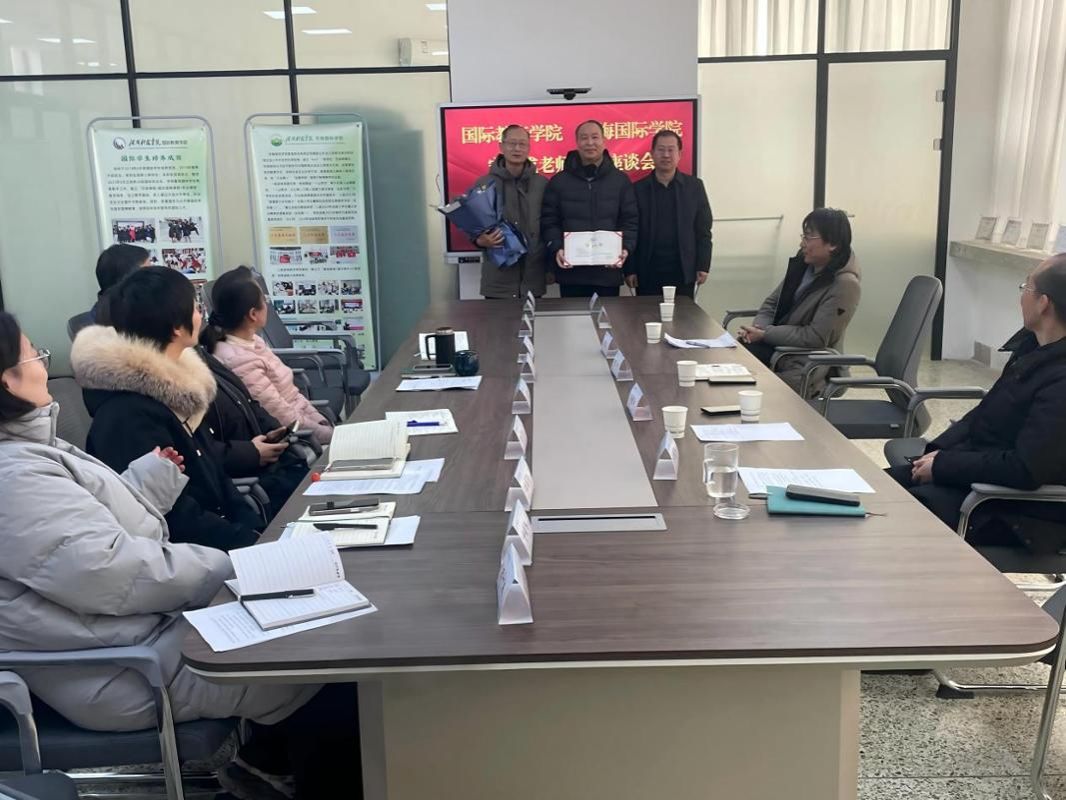 1月27日,苏梅国际学院在博闻楼500会议室召开宋合成老师荣休座谈会。学院党政班子成员和全体教职工参加会议,植物保护与环境学院、高等职业技术学院、成果转化与合作办公室等单位领导应邀参加会议。会议由学院党委副书记刘凤主持。