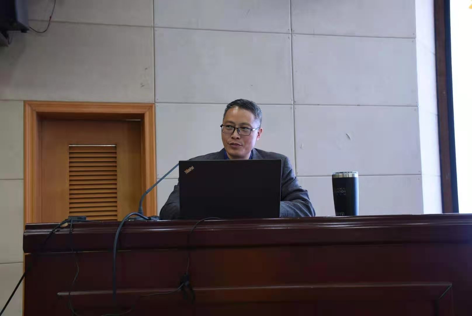 杨宾峰教授首先让大家现场完成手机使用状况小测试,解析了什么是手机依赖。接着围绕着大学生手机依赖现象的研究热点、形成原因、不良因素和干预对策等切入点,深度解析了手机依赖的成因及干预对策。最后,杨宾峰教授深入浅出地把如何改变自己对手机依赖的建议和对策用最通俗的语言娓娓道来,从而启发在座的同学们认识到要适度使用手机,并采取措施预防手机成瘾;使全体学工人员领悟到学生工作中要懂得研究,尊重规律,减少盲目。