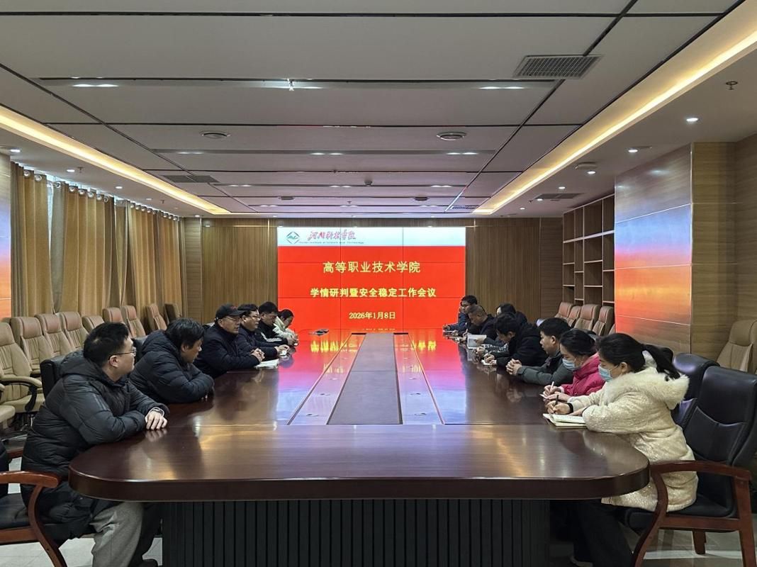 为筑牢学生安全稳定防线,1月8日上午,高等职业技术学院在综合楼十楼会议室召开学情研判暨学生安全稳定工作会议。学院党委副书记张高峰、各系党支部书记、辅导员及团委、学生科全体人员参加会议。