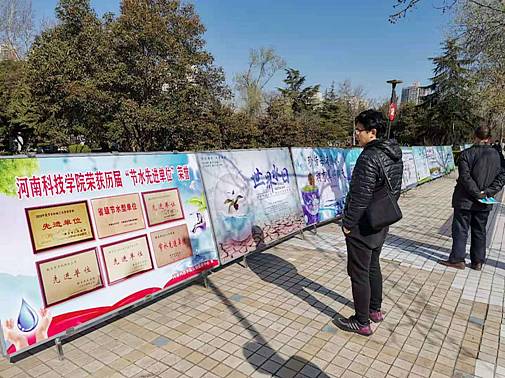 3月22日,新乡市节水宣传活动在市人民公园举行,我校制作节水展板和条幅,积极参加了宣传活动。