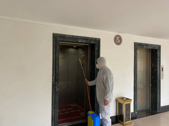对行政楼电梯口进行消杀