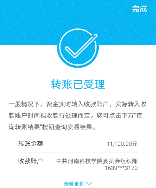 向校组织部账户捐款