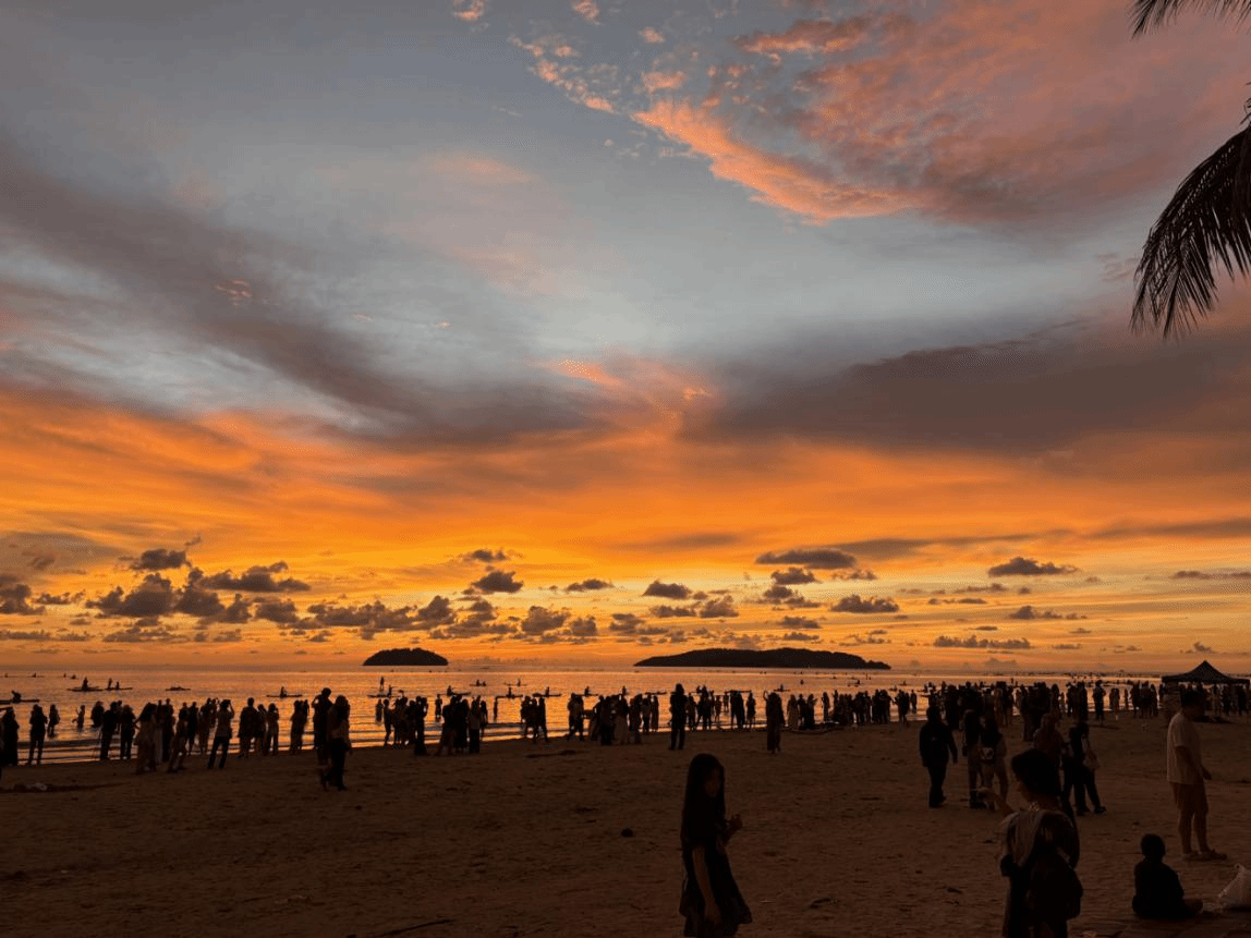 亚庇之行,则让我感受到马来西亚的“自然之美”。我去了丹绒亚路海滩,看了一场“世界十大最美日落”,夕阳把海面染成金红色。和同学们出船去海岛,岸边的海浪波涛,诉说大海的瑰丽。海里的浮潜,看着鱼儿在手中游动,不免感叹于自然的伟大。浮潜结束后,我顶着湿漉漉的头发,看着远处的渔船在波光里摇曳,岸边的马来小孩在沙滩上追逐嬉戏,华人情侣在拍照留念,不同族群的人共享同一片美景,画面格外温暖。那一刻,我突然觉得:马来西亚的美,不仅在于风景,更在于“不同族群和谐共处”的氛围,这种“包容”,是这片土地最珍贵的礼物。